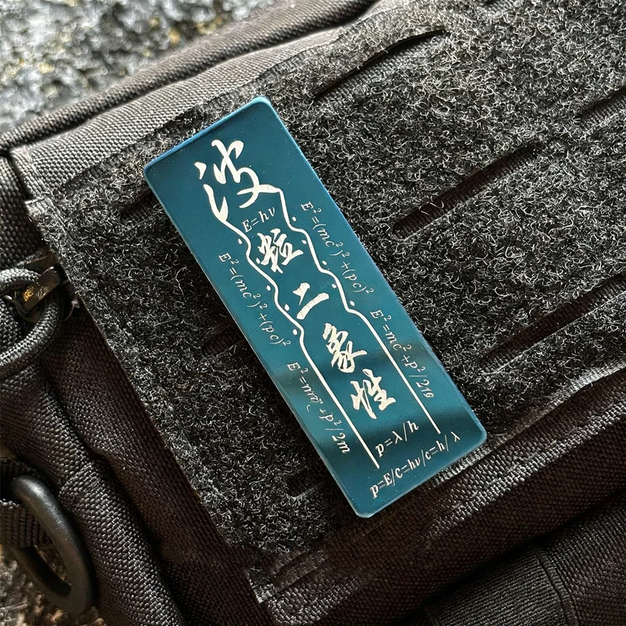 Brazalete táctico de energía de conservación de parches de Metal mecánico de dualidad de partículas de ondas y enredos cuánticos, decoración de bolsa DIY
