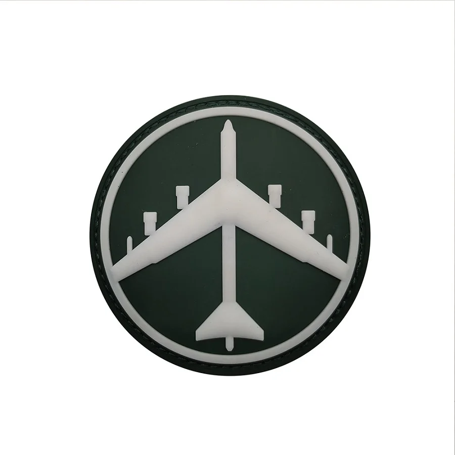 Brazalete táctico de goma redondo luminoso con parche de PVC para avión que brilla en la oscuridad con gancho para decoración de ropa y mochilas