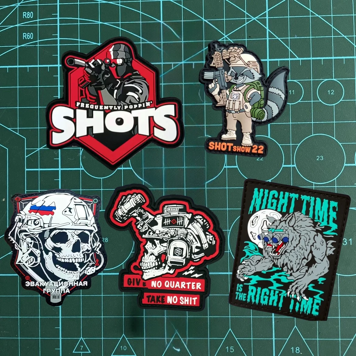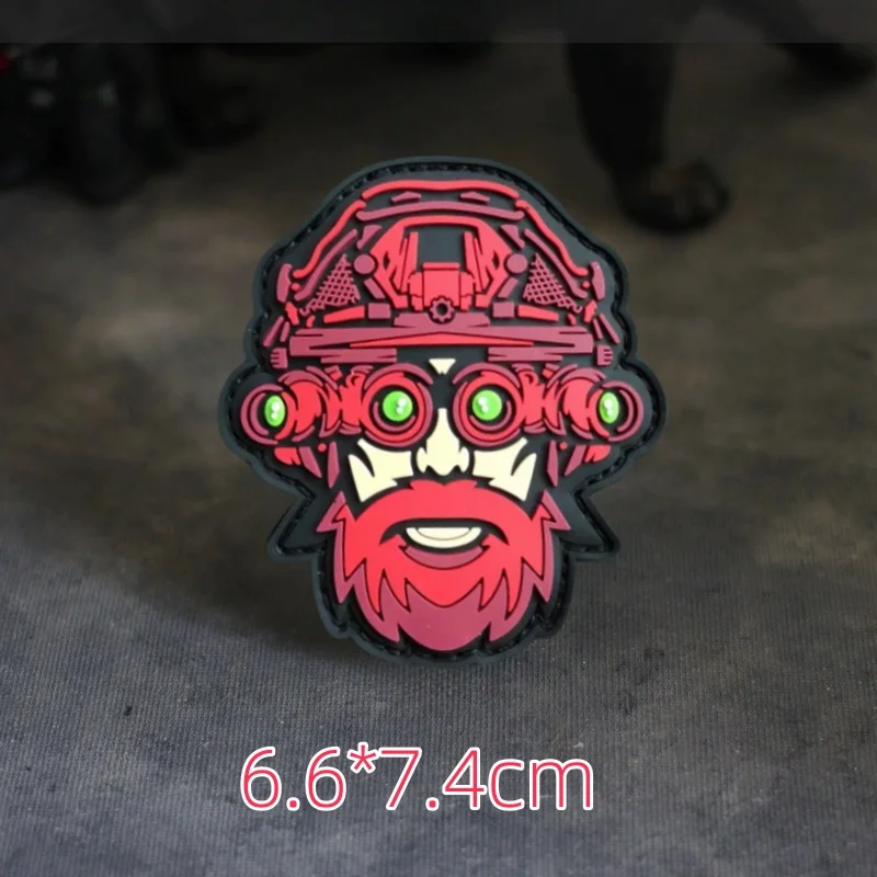 Tiros Parches militares de PVC Gancho y bucle Visión nocturna Casco de calavera Insignia de moral Táctica Noche Lobo Mochila Brazalete NOTA: