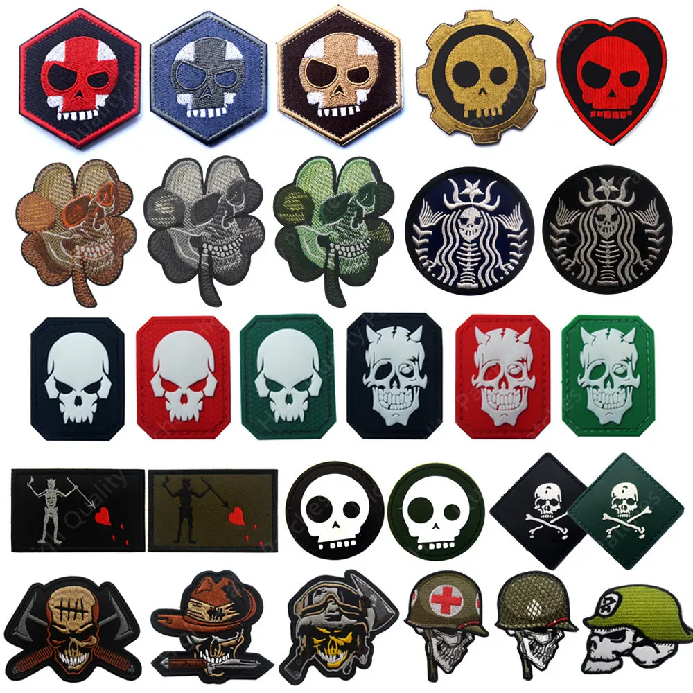 Brazalete de trébol de cuatro hojas, insignia médica de Calavera, bordado de calavera pirata, insignia de moral táctica de Gas de bioquímica, parches para ropa