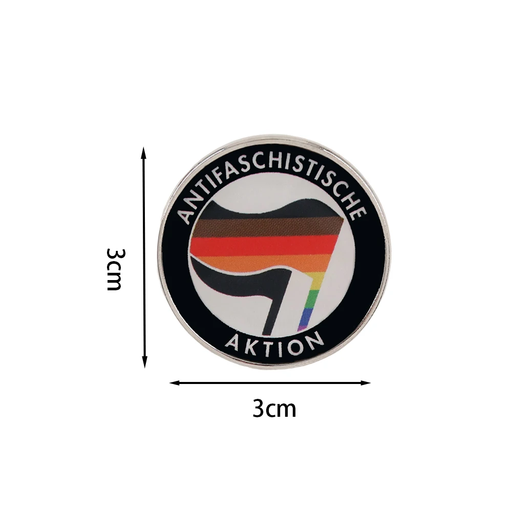 Este broche de metal "Acción Antifascista" combina a la perfección los símbolos antifascistas con el sentimiento inclusivo y orgulloso expresado en el diseño de la bandera nacional.Está fabricado en metal y esmalte de alta calidad, con un diámetro de 3 centímetros.La artesanía es exquisita y duradera.