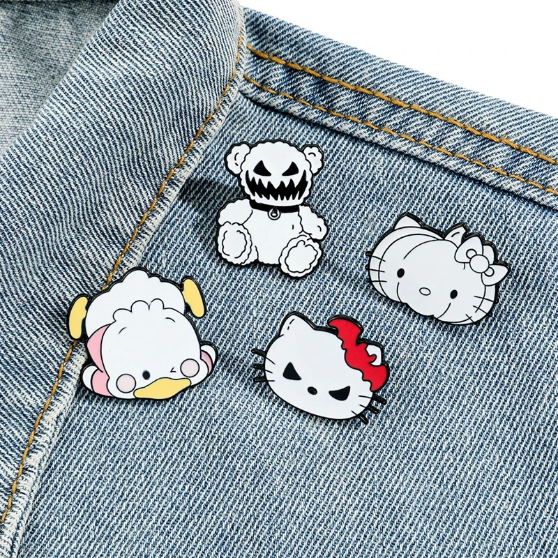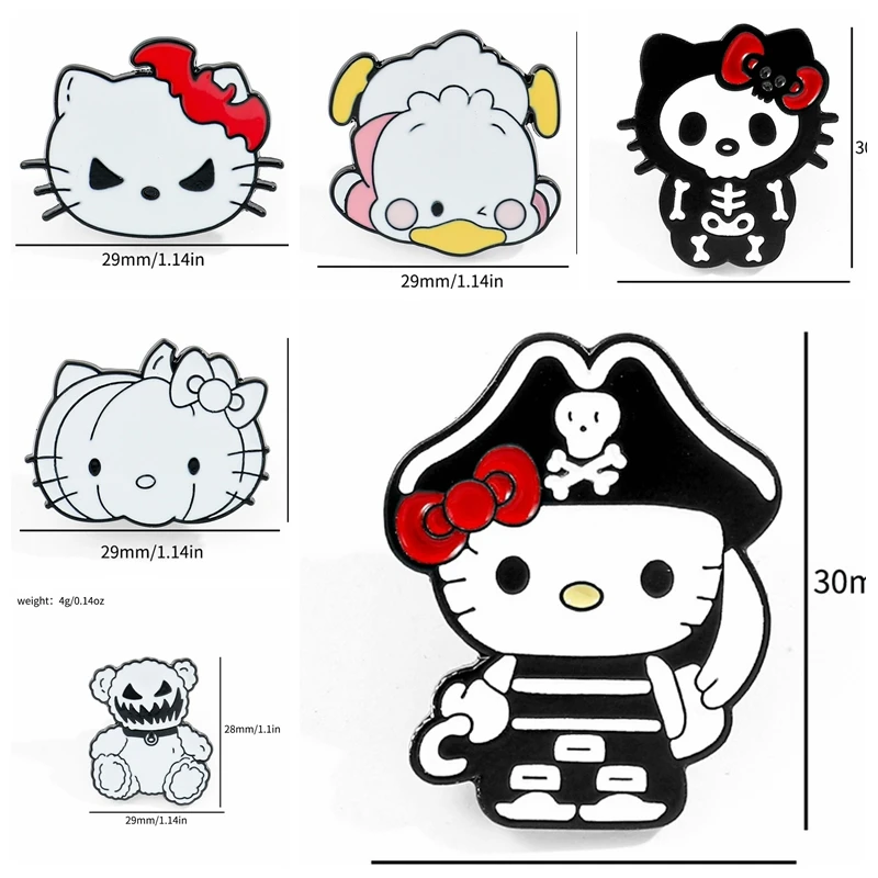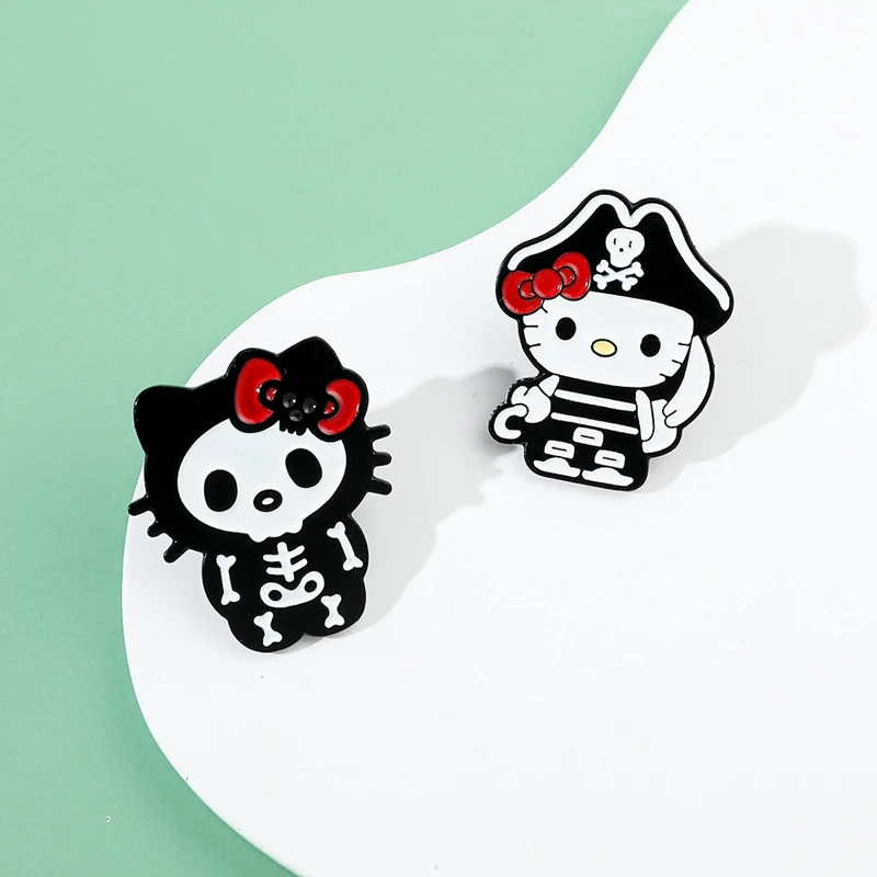 Broche de fantasma de esqueleto de Hello Kitty, personaje de dibujos animados de Anime, lindo Pin de esmalte, mochila, ropa, insignia de Metal, regalo para amigo