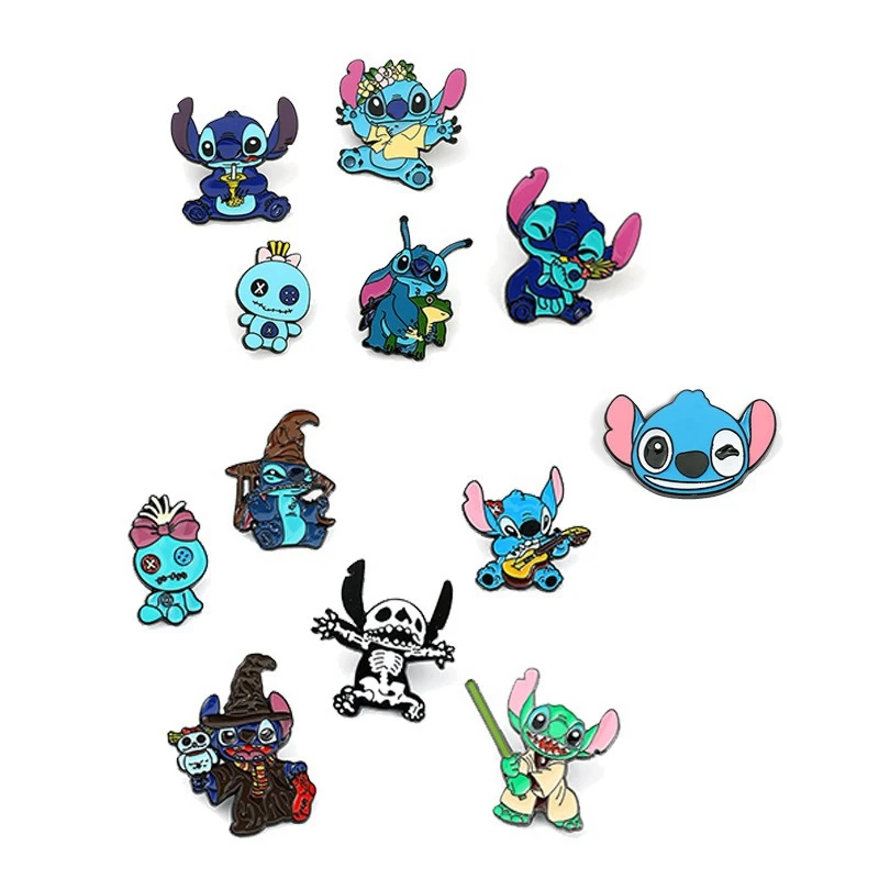 Broche de la serie Stitch, lindo insignia de metal de anime de dibujos animados europeos y americanos, accesorios de mochila Diy, regalos de fiesta