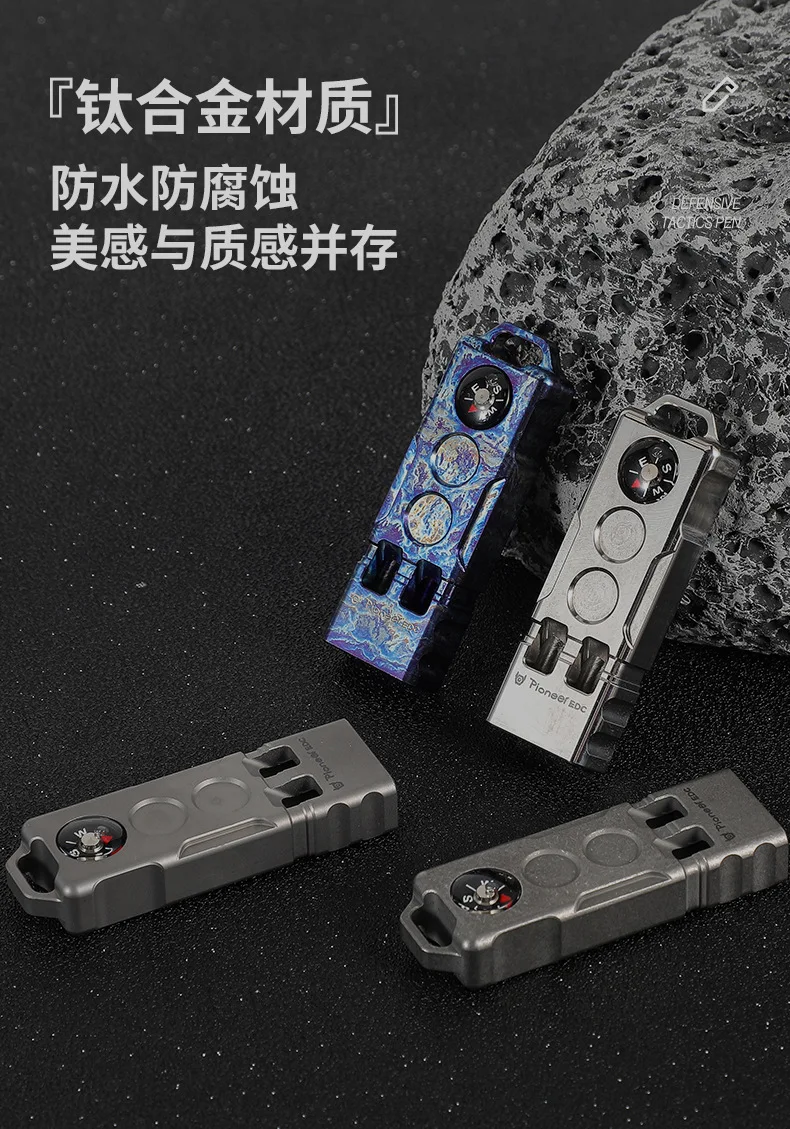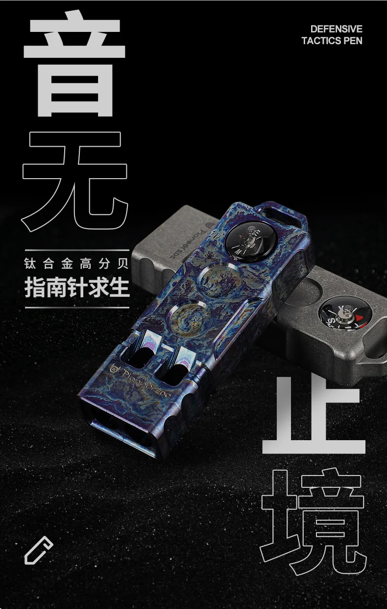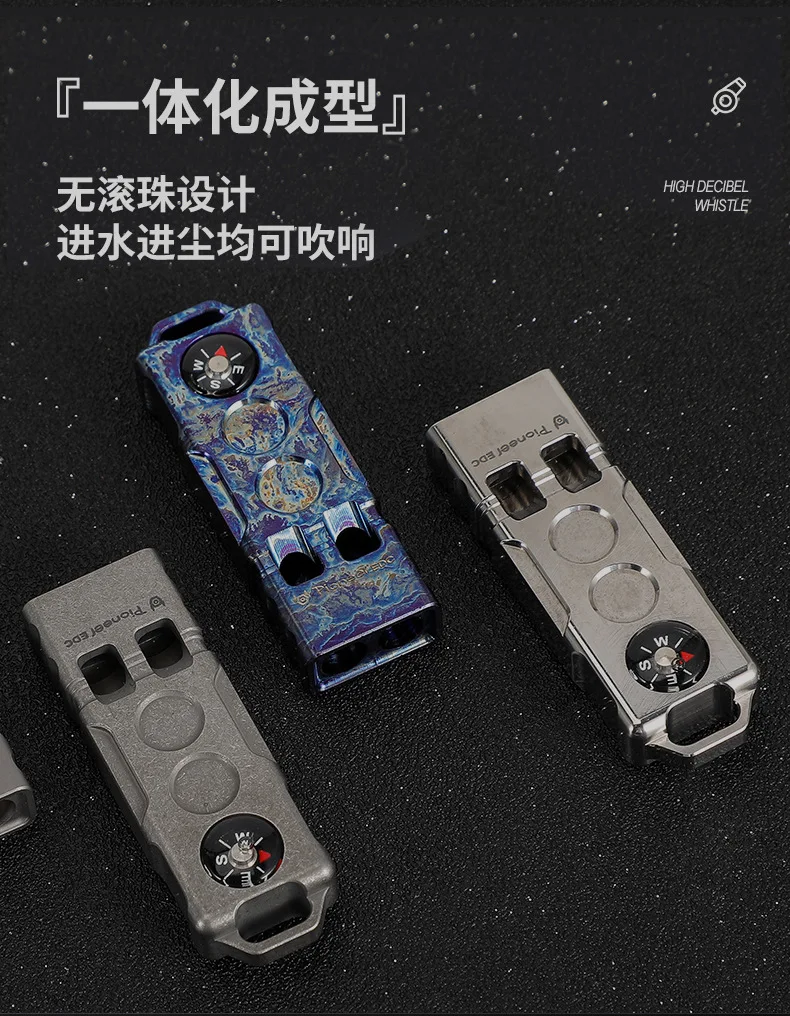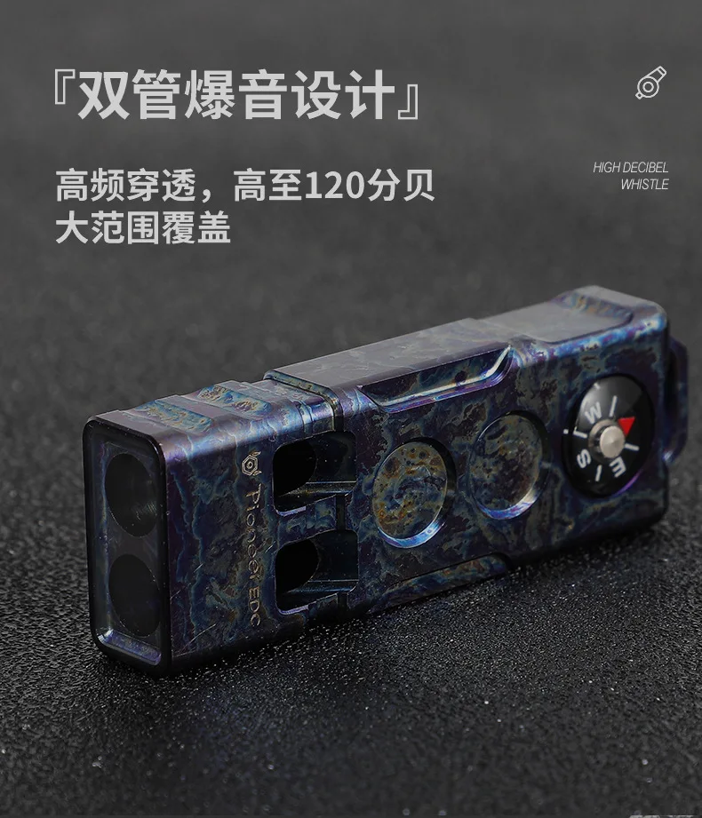 Brújula de aleación de titanio de 128dB, silbato de dos barras, silbato de alto decibelio para aventura de supervivencia en la naturaleza al aire libre