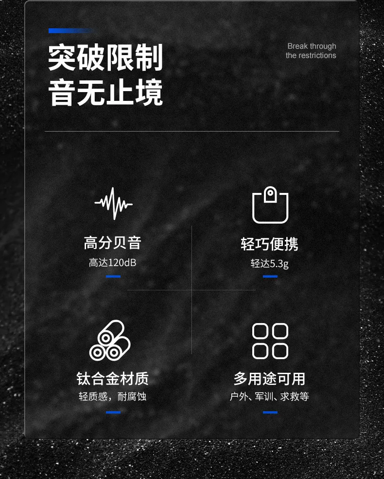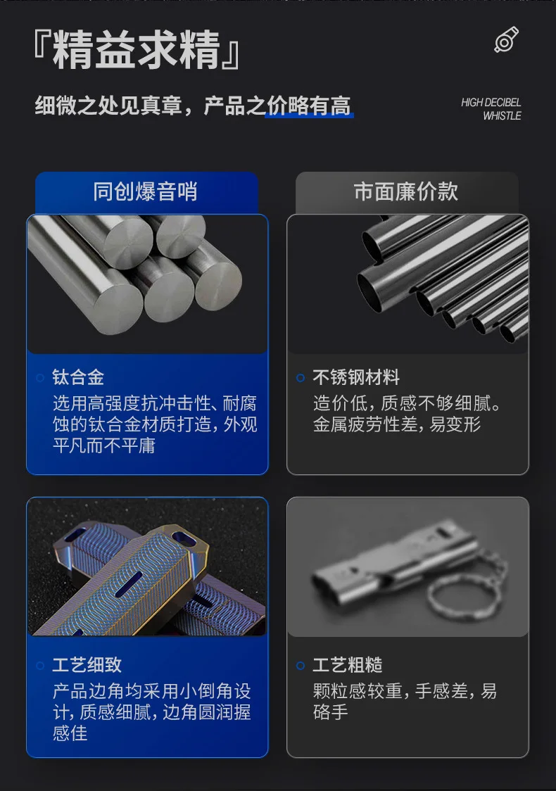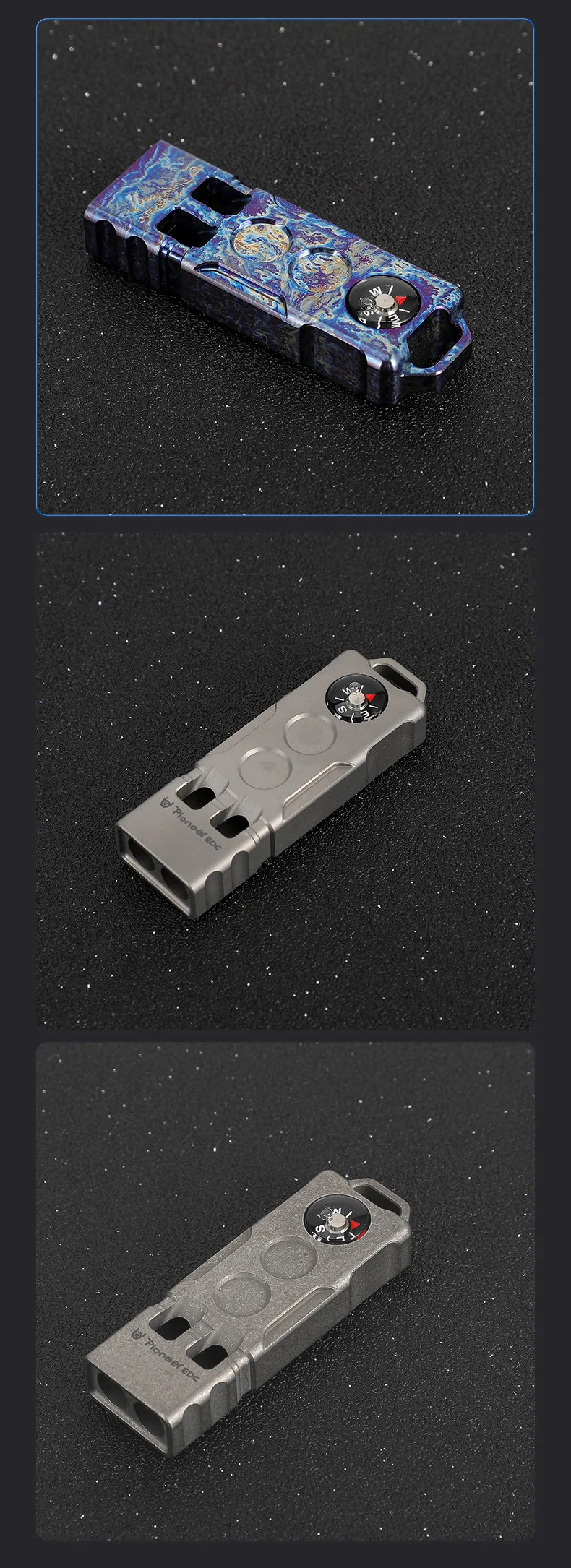 Brújula de aleación de titanio de 128dB, silbato de dos barras, silbato de alto decibelio para aventura de supervivencia en la naturaleza al aire libre