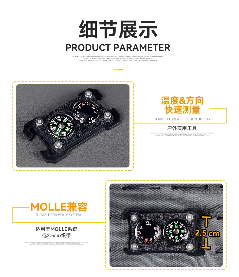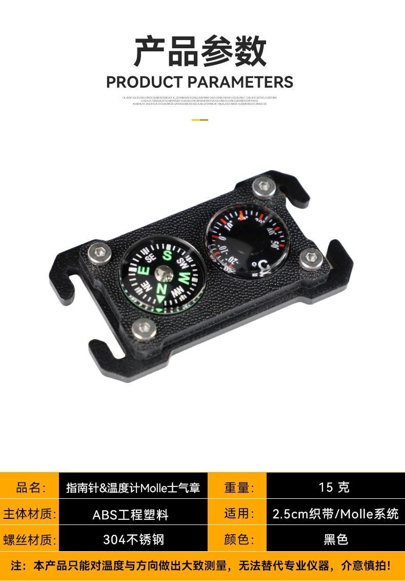 Brújula termómetro sello moral mochila al aire libre Molle accesorios herramientas decoración etiqueta de identificación dura modificación DIY
