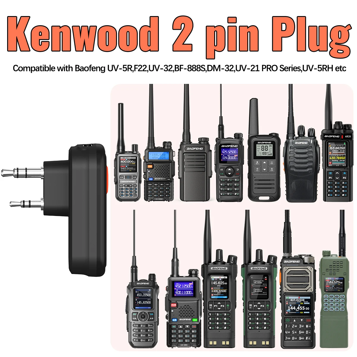Compatible con la serie Baofeng UV5R UV-82 BF-888S Retevis H-777 RT22 RT21 Woxun Kenwood radio de 2 pines,Quansheng UV K5 (8) UV 5R Plus K6 etc.