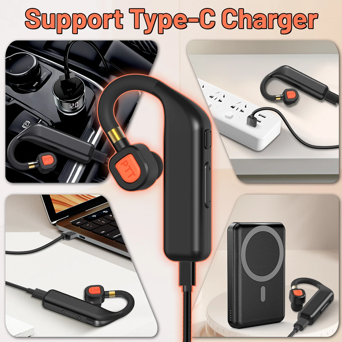 Este auricular viene con una potente batería incorporada, por lo que no hay necesidad de preocuparse por problemas de energía en exteriores.Equipado con un cargador USB tipo C, que admite múltiples métodos de carga como banco de energía, computadora, carga de automóvil, etc.