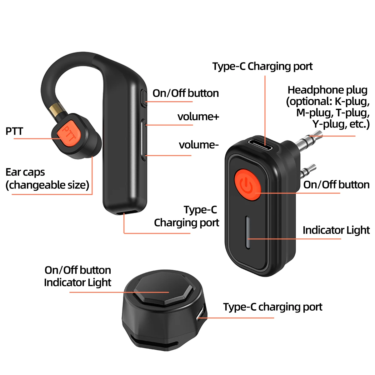Este auricular adopta la tecnología de conexión Bluetooth, que es más conveniente que las conexiones por cable tradicionales.Auriculares Bluetooth diseñados específicamente para entusiastas de la radio bidireccional, que liberan las manos y satisfacen diversas necesidades.Puede acomodar dos dispositivos simultáneamente (walkie talkies y otro dispositivo Bluetooth, como un teléfono o una tableta).