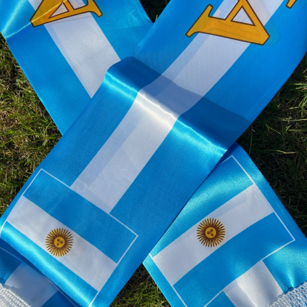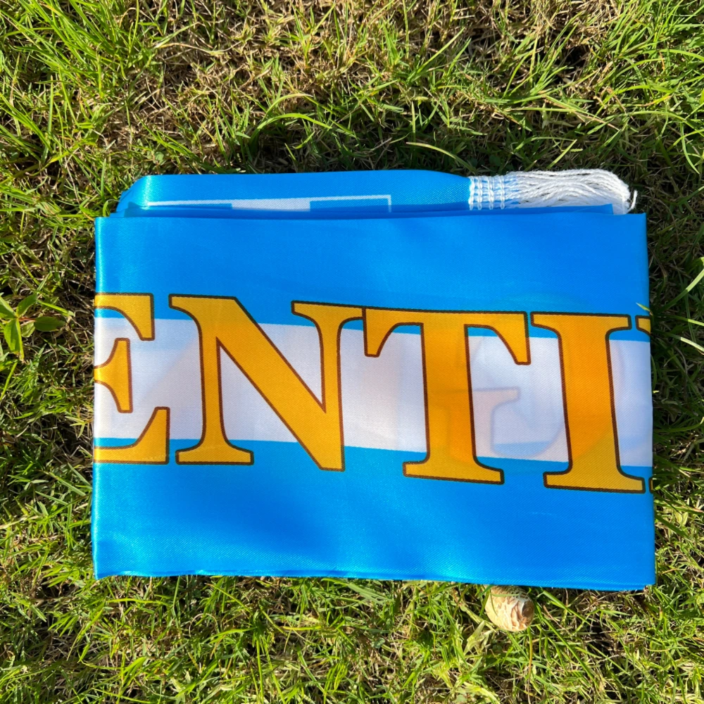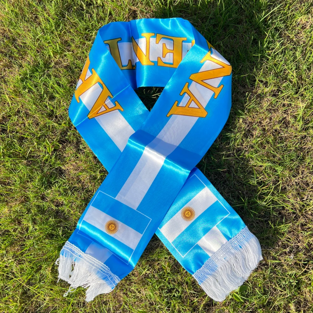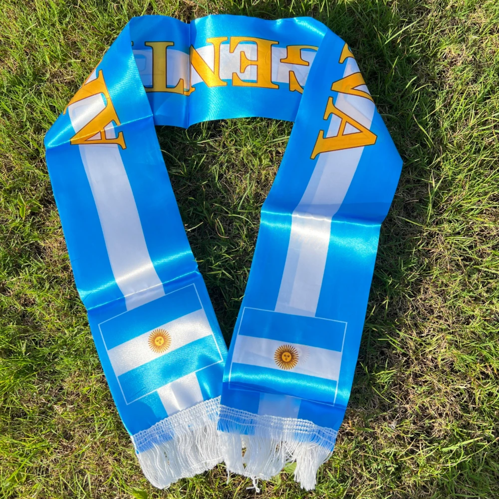 Bufanda de seda de 14x130cm, satén estampado, abanicos del equipo nacional, bufanda de seda con bandera de flecos de Argentina, bufanda de seda, recuerdo