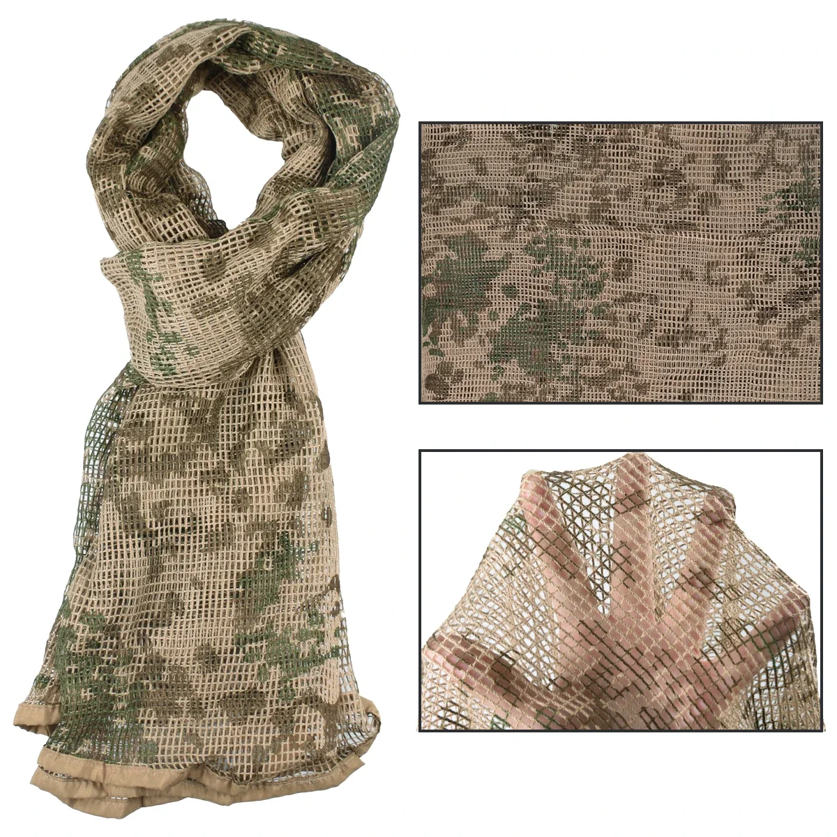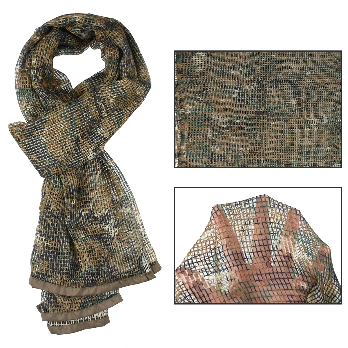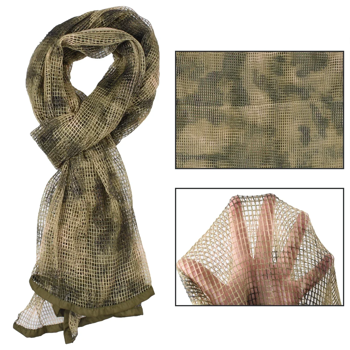 Bufanda de malla táctica de 190x90cm, red de camuflaje, red de camuflaje para caza, tiro deportivo, fotografía salvaje, Sniper, pañuelos de malla de camuflaje para senderismo Esta bufanda de malla se usa en todo tipo de clima, se usa ampliamente para camuflar, desempañar y protegerse de la arena en actividades tácticas o al aire libre. Adecuado para: Camping, vadear, montañismo, senderismo y ciclismo. Características: Excelente elasticidad y resistencia a la abrasión en condiciones de seco o mojado, ligera contracción, recta y no fácil de arrugar, cómoda de lavar y de secado rápido, pero no se puede usar plancha caliente ni sumergir en agua hirviendo. Especificación Material: 80% algodón + 20% nailon Color: Camuflaje del bosque Tamaño: Aprox. 186*86 cm (largo x ancho)