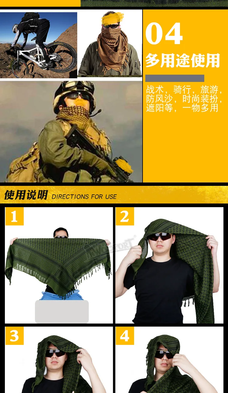 Bufanda cuadrada táctica árabe bufanda cálida y fría bufanda al aire libre cómoda