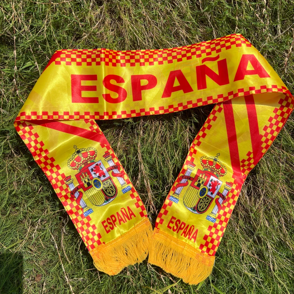Bufanda de España, 14x130cm, estampado de doble cara, satén, fútbol, aficionados, bufanda de España, banderas, cartel para decoración deportiva