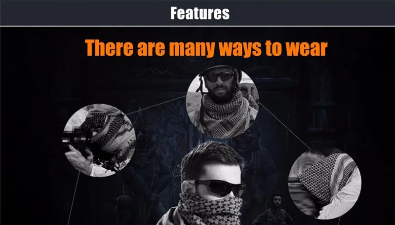 Bufanda táctica árabe del desierto para hombres, chal militar del ejército a prueba de viento, cubierta para el cuello, envoltura para la cabeza, caza al aire libre, senderismo, Keffiyeh Shemagh