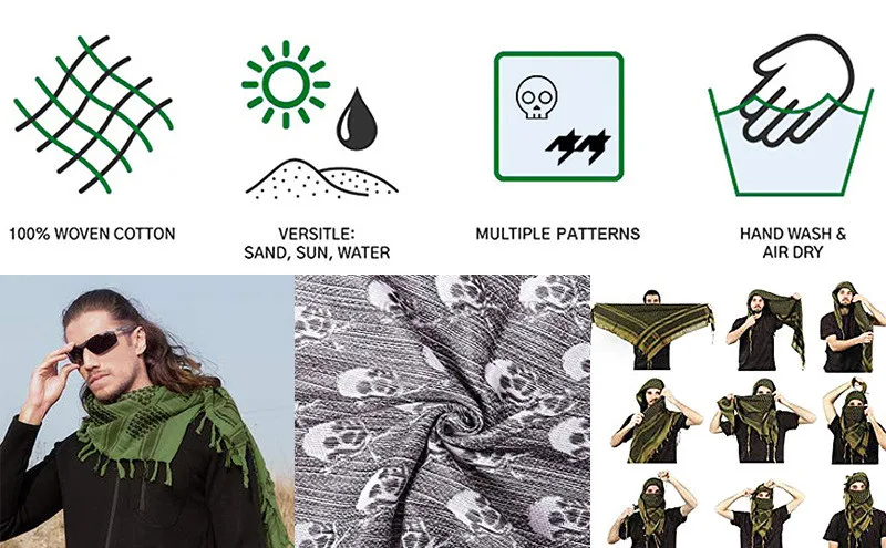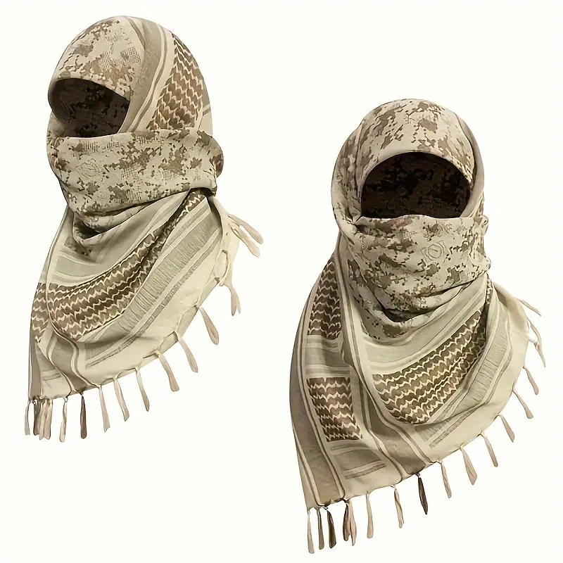 Bufanda táctica árabe Keffiyeh Shemagh, chal de algodón para invierno, cubierta más cálida para el cuello, envoltura para la cabeza, bufanda para acampar al aire libre a prueba de viento para hombres y mujeres