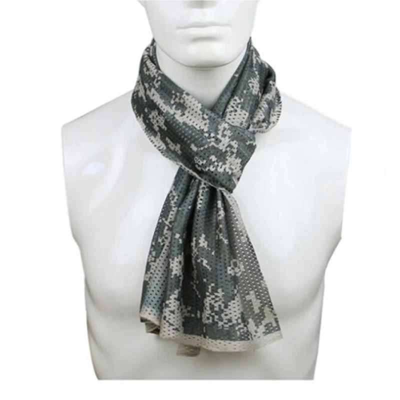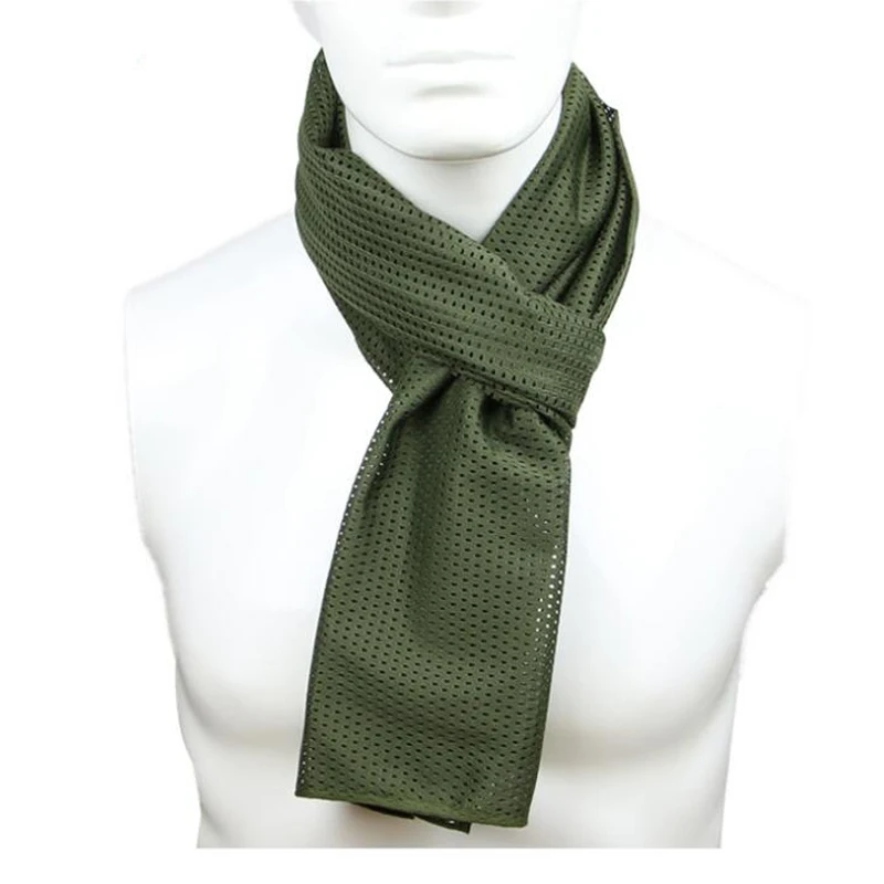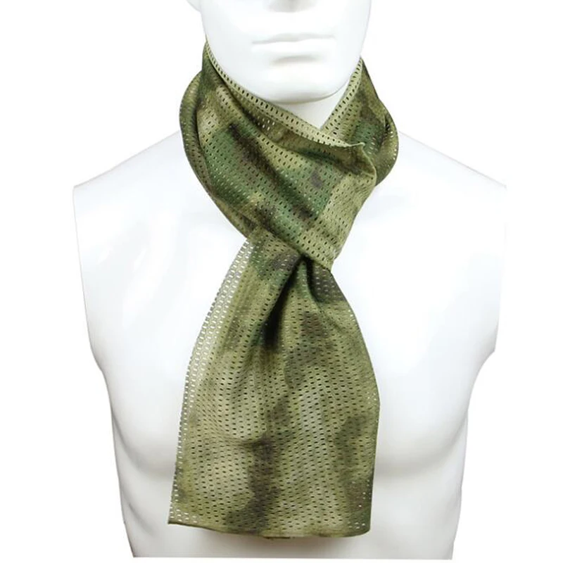 -Esta bufanda de malla se usa en la jungla y el desierto, excelente transpirabilidad con múltiples orificios en la tela que anteriormente es aplicable a los mosquitos o antipolvo, y ahora se usa ampliamente para disfrazarse en actividades tácticas.
