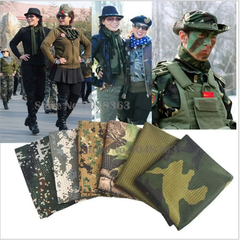 100 nuevo y de alta calidad Esta bufanda de malla se usa en la jungla y el desierto, excelente transpirabilidad con múltiples orificios en la tela que anteriormente se aplica a los mosquitos o antipolvo, y ahora se usa ampliamente para disfrazarse en actividades tácticas. Aplicación: Bufanda, silenciador, diadema, toallas absorbentes, red a prueba de insectos y red de camuflaje. Material: malla transpirable