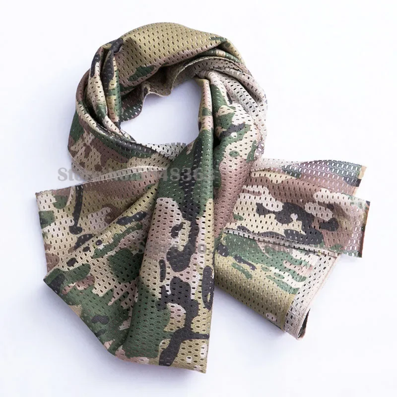 Bufanda táctica para exteriores, bufanda de malla de camuflaje para el cuello, máscara facial, envoltura para la cabeza, transpirable, para acampar, cazar, senderismo, bufandas, ropa