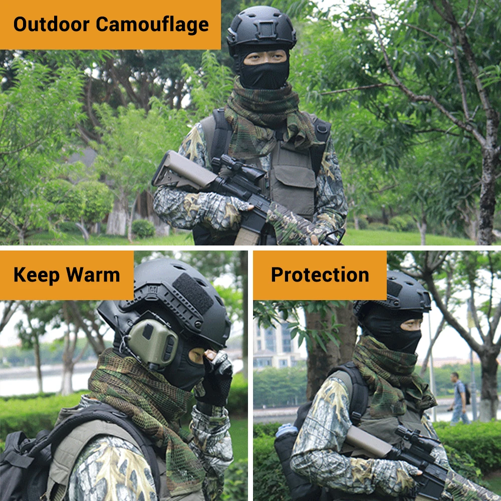 Tactical Mesh Camo Scarf Breathbale Camouflage Netting Sniper Face Veil Scarves for Wargame Sports Hunting Shooting Camping