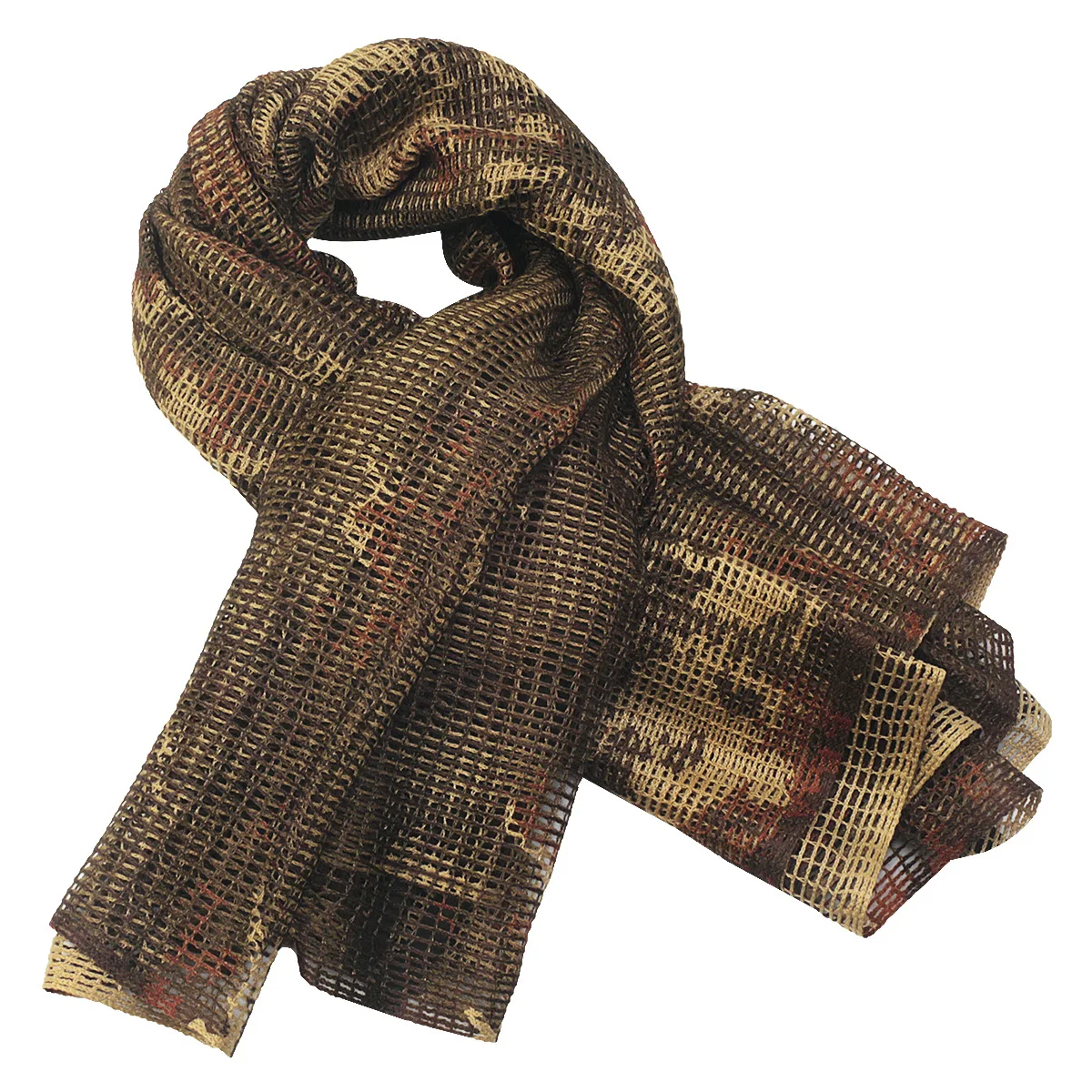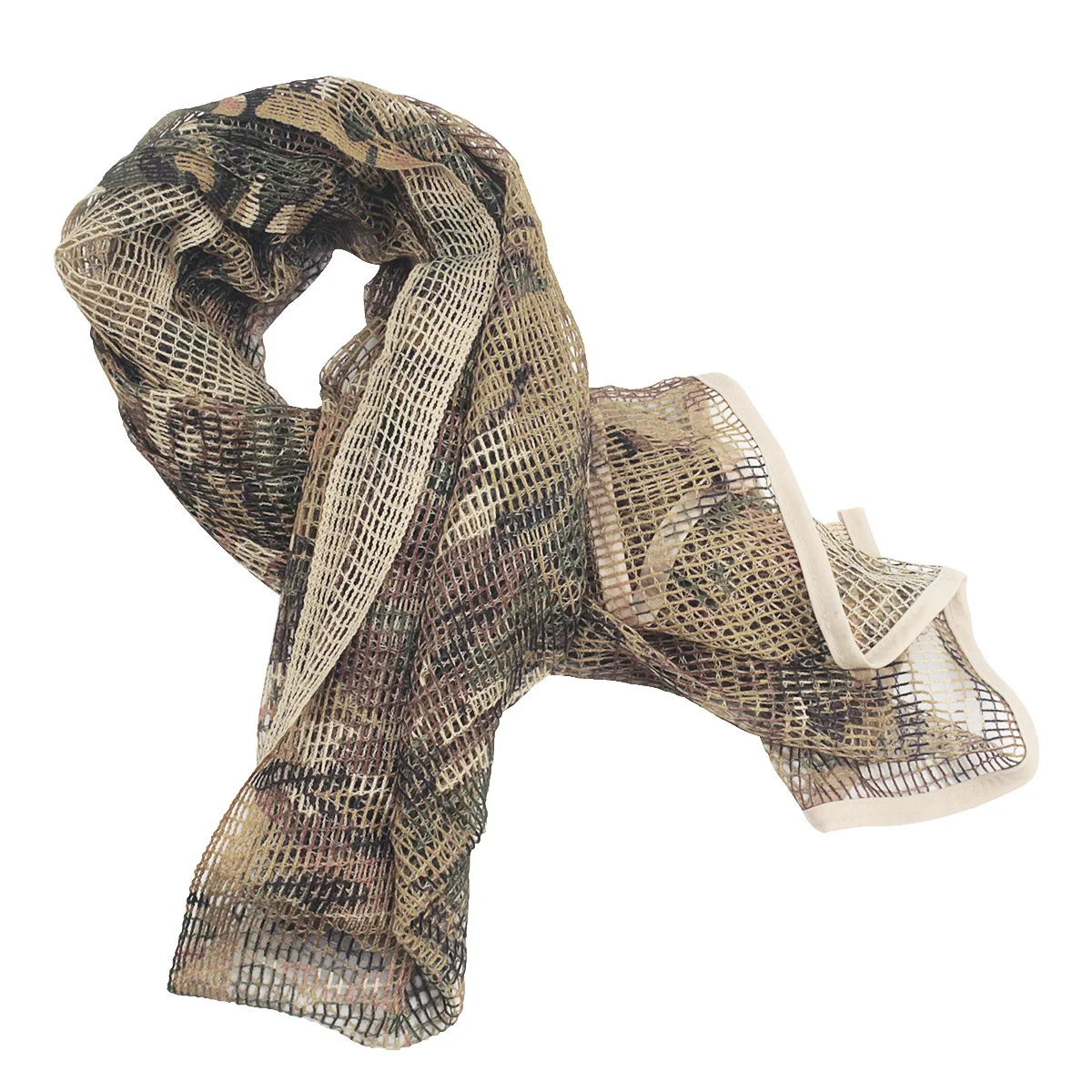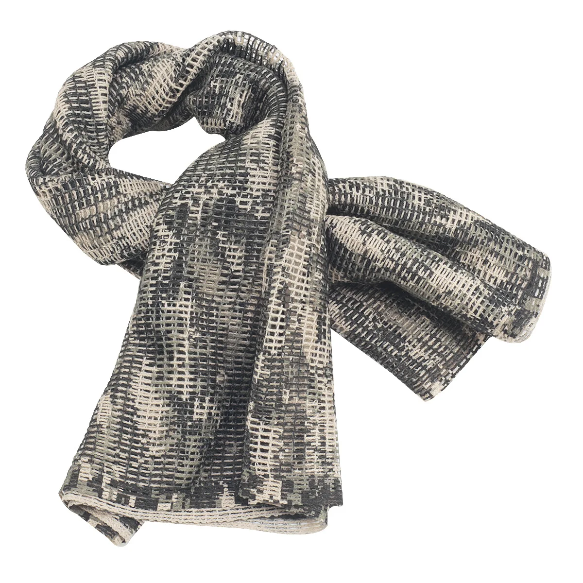 Esta bufanda de malla se usa en todo tipo de clima, se usa ampliamente para camuflar, desempañar y protegerse de la arena en actividades tácticas o al aire libre.