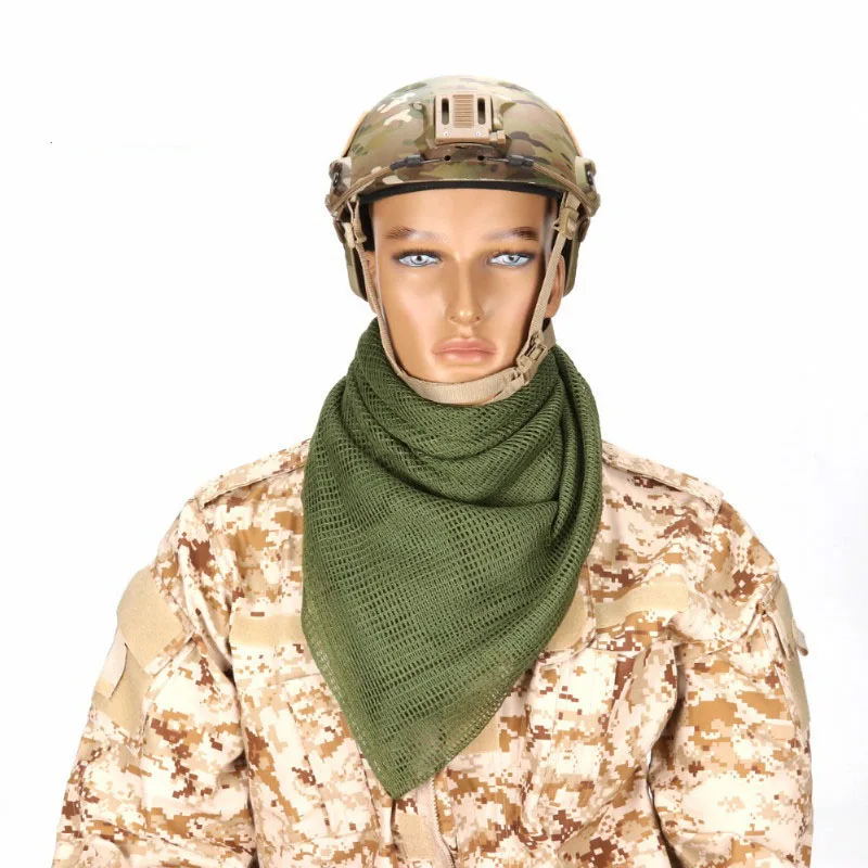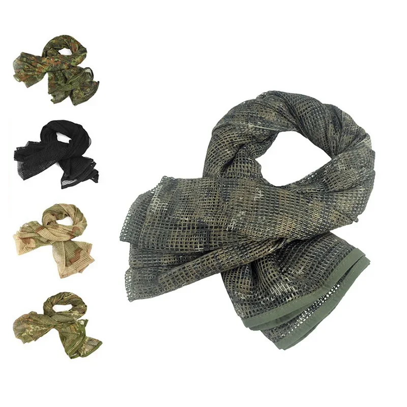 Esta bufanda de malla se utiliza en todo tipo de clima, ampliamente utilizada en el camuflaje, desfilado y protegerse de soplar Arena en actividades al aire libre o tácticas.