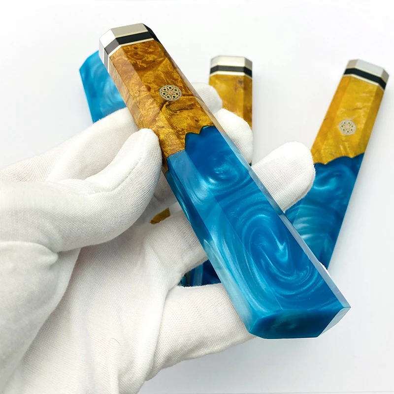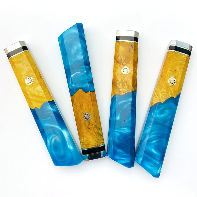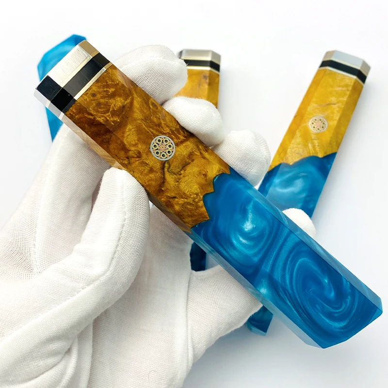 Burl madera resina cuproníquel Material estilo japonés cocina octogonal mango de cuchillo de cocina