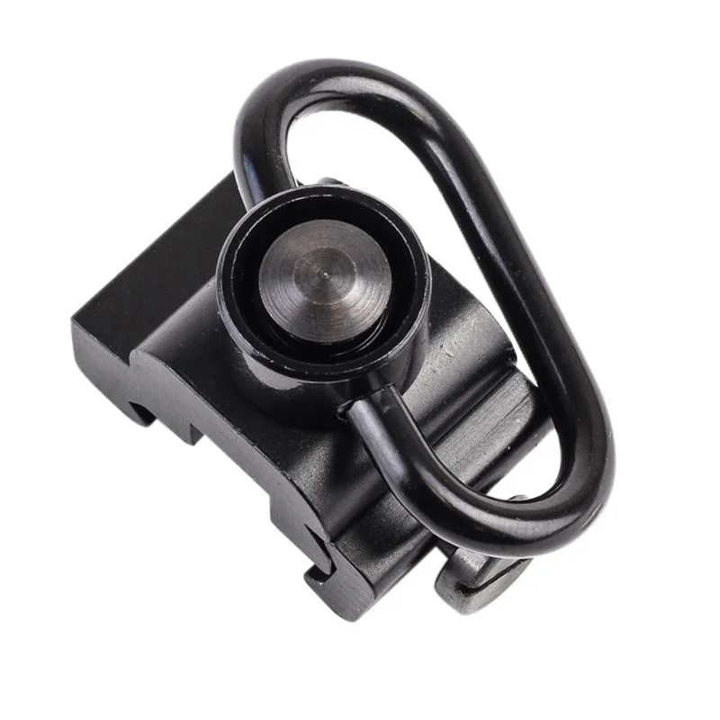 3. Eslinga giratoria suave QD hecha de acero de alta resistencia con acabado negro mate, máxima durabilidad garantizada bajo uso pesado.