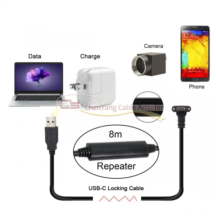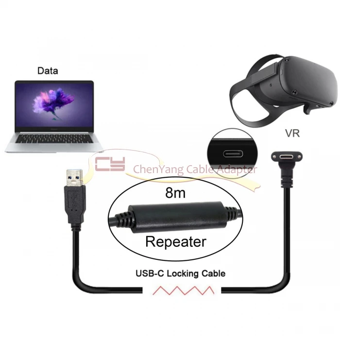 Up Angled USB 3,1 Tipo-C Bloqueo de tornillo dual a cable de datos USB3.0 estándar 90 grados para cámara Oculus Quest Link