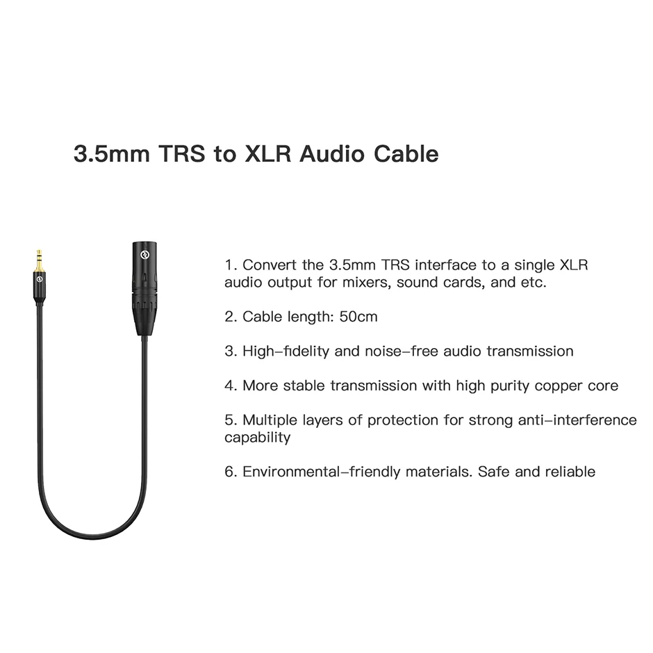1. Convierte la interfaz TRS de 3,5mm en una sola salida de audio XLR para mezcladores, tarjetas de sonido, etc.