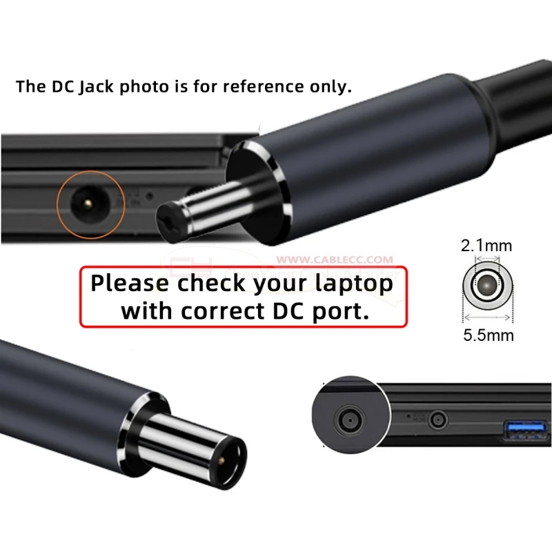 Úsalo con el cargador tipo C de 135W/140W para cargar tu ordenador portátil con puerto DC de 5,5mm.