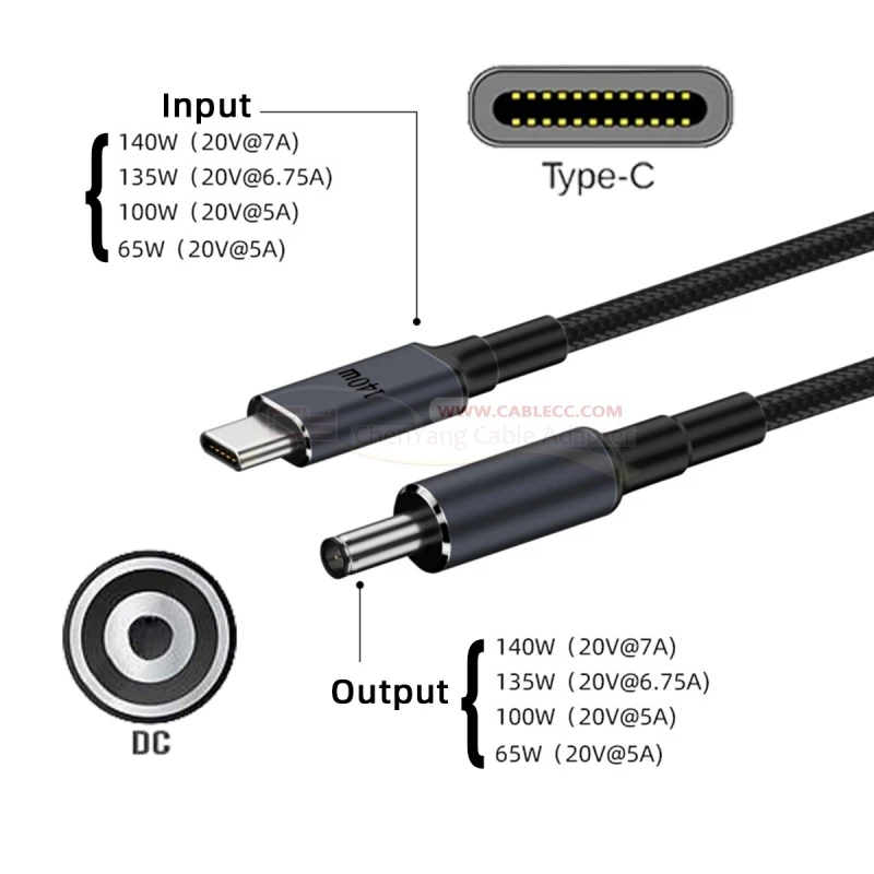 Tipo C, entrada macho a salida DC 5,5*2,1mm/DC 5,5*2,5mm macho 20V potencia 100W 135W 140W 65W