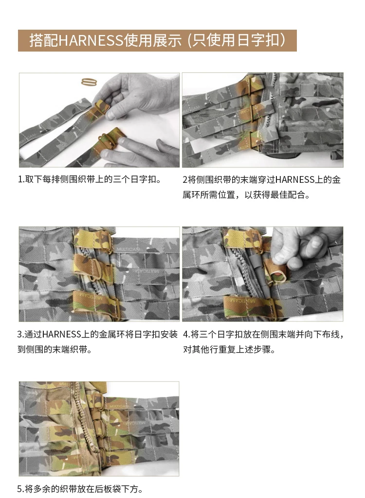 Cable de conexión de chaleco AVS, cuerda de liberación rápida, hebilla para hombrera, accesorio de 3 bandas, paneles delanteros y traseros desmontables