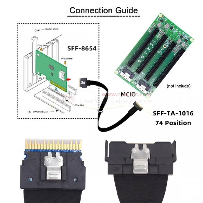 Fácil de usar: simplemente conecte el extremo de 74 pines del cable en el dispositivo y el extremo MCIO en su disco duro externo, y listo para usar.