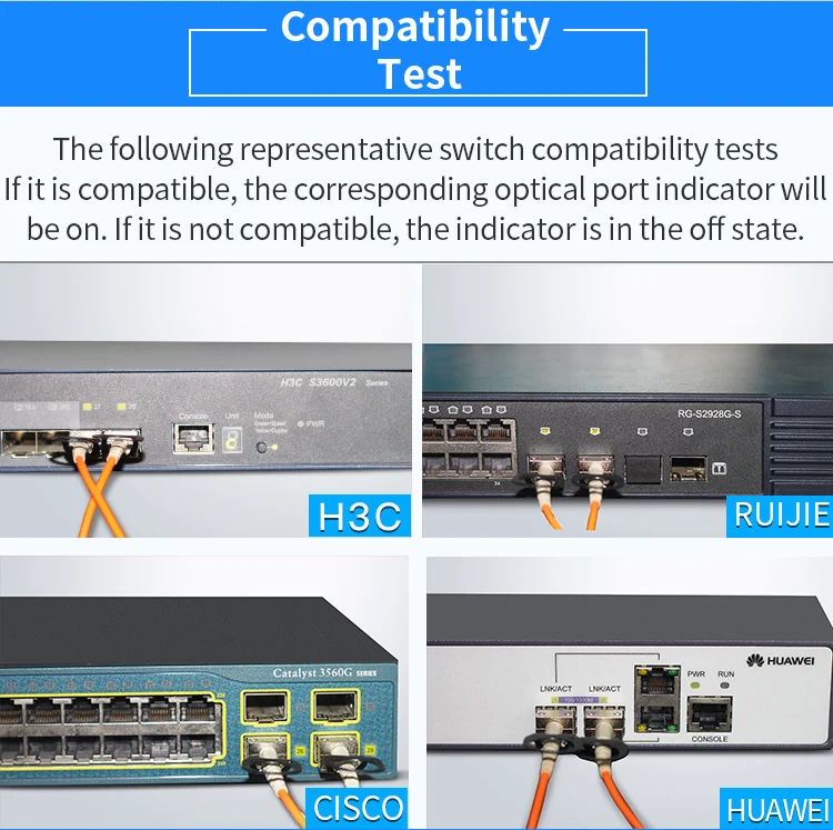 Debido a que algunas marcas de interruptores solo admiten su propio código, déjenos un mensaje sobre su marca switch, para que podamos escribir el código correspondiente al módulo sfp