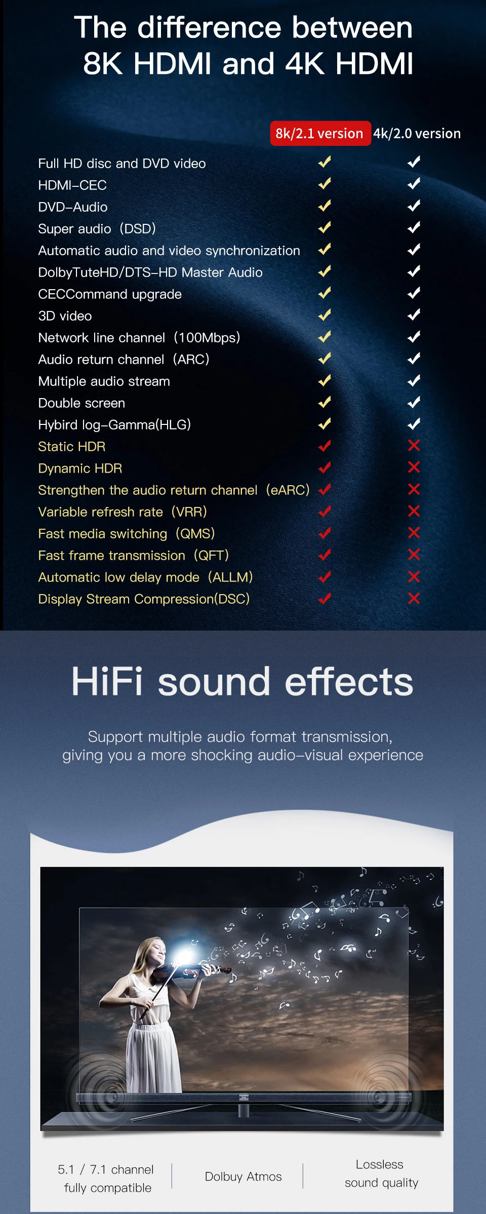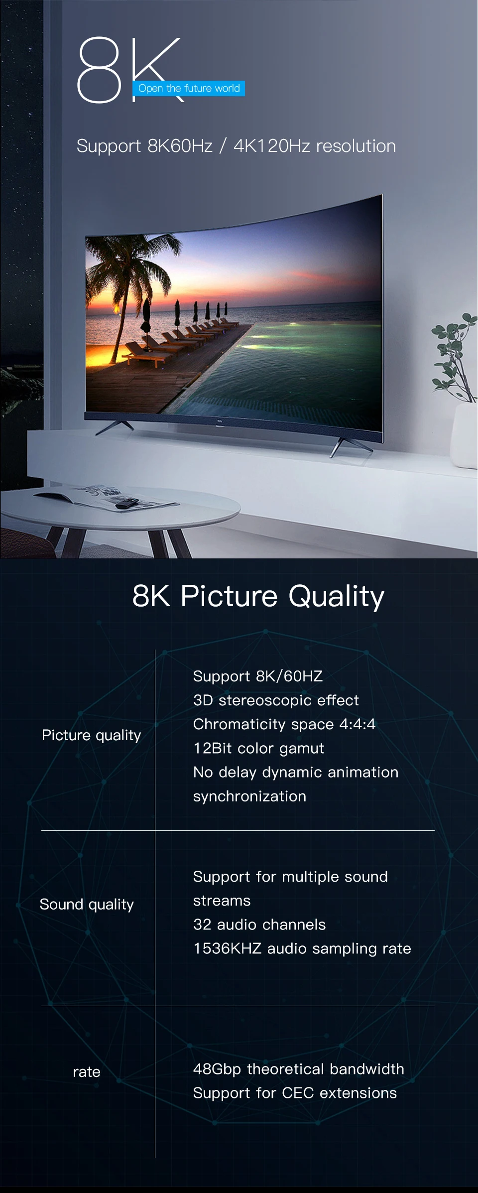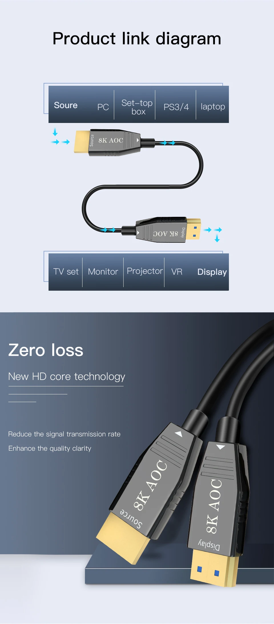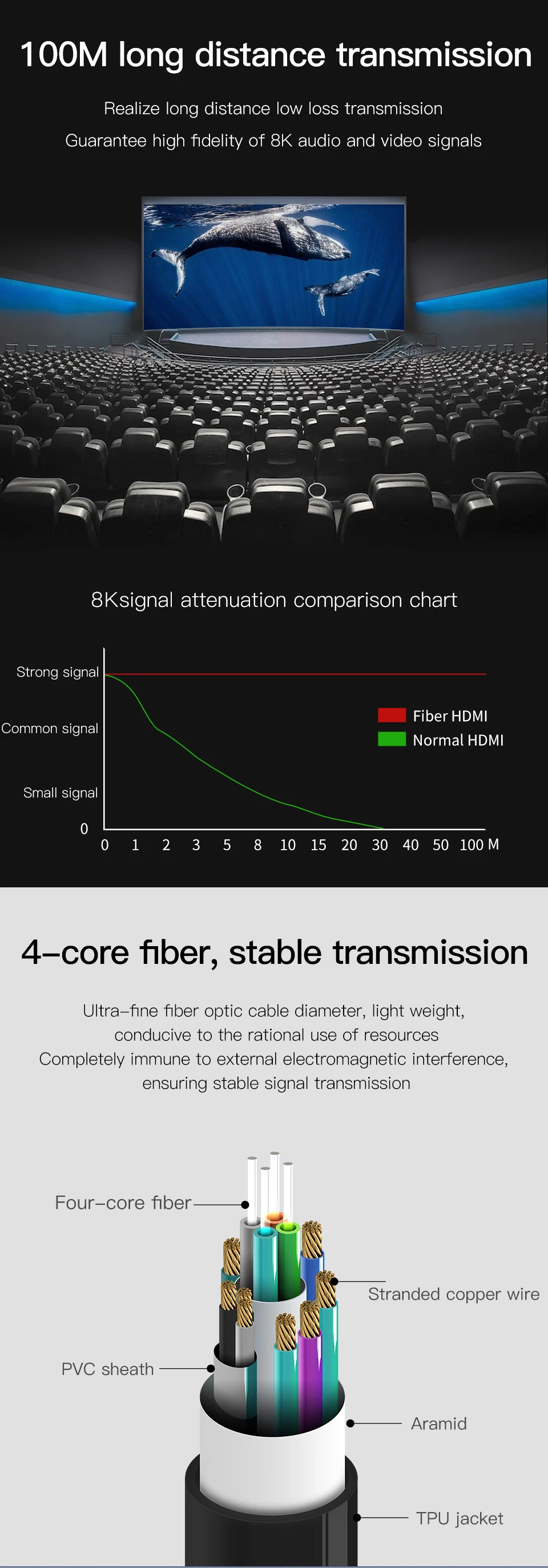 Cable de fibra óptica 8K 2,1, 120Hz, 48Gbs, compatible con HDMI 2,1, 2,0, Ultra Alta Velocidad, HDR, eARC, para HD, TV Box, proyector, PS4