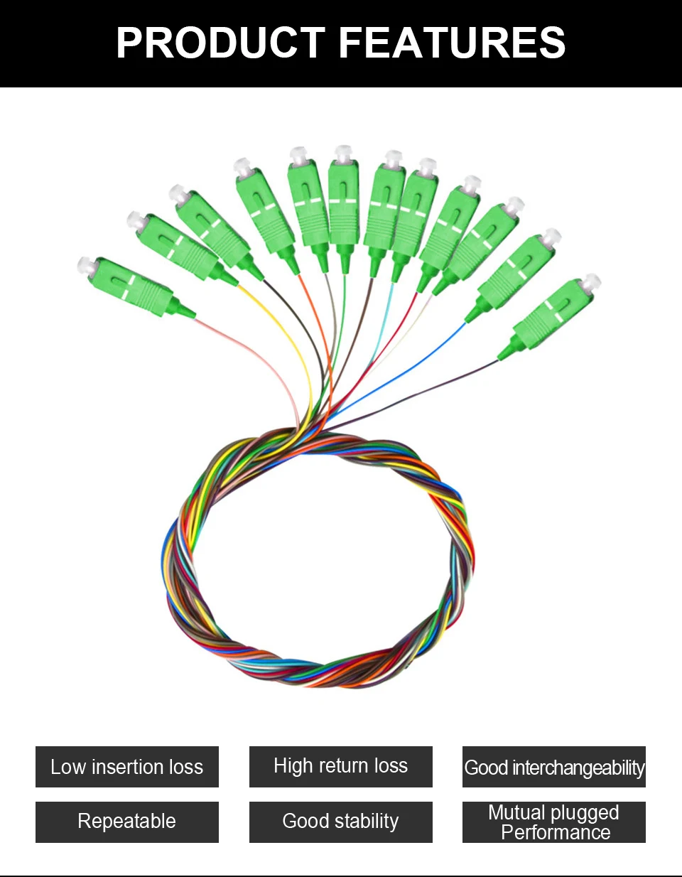 Cable de fibra óptica Pigtail SM(9/125), 12 colores SC/APC, 1M, fanout, SM simplex, envío gratis