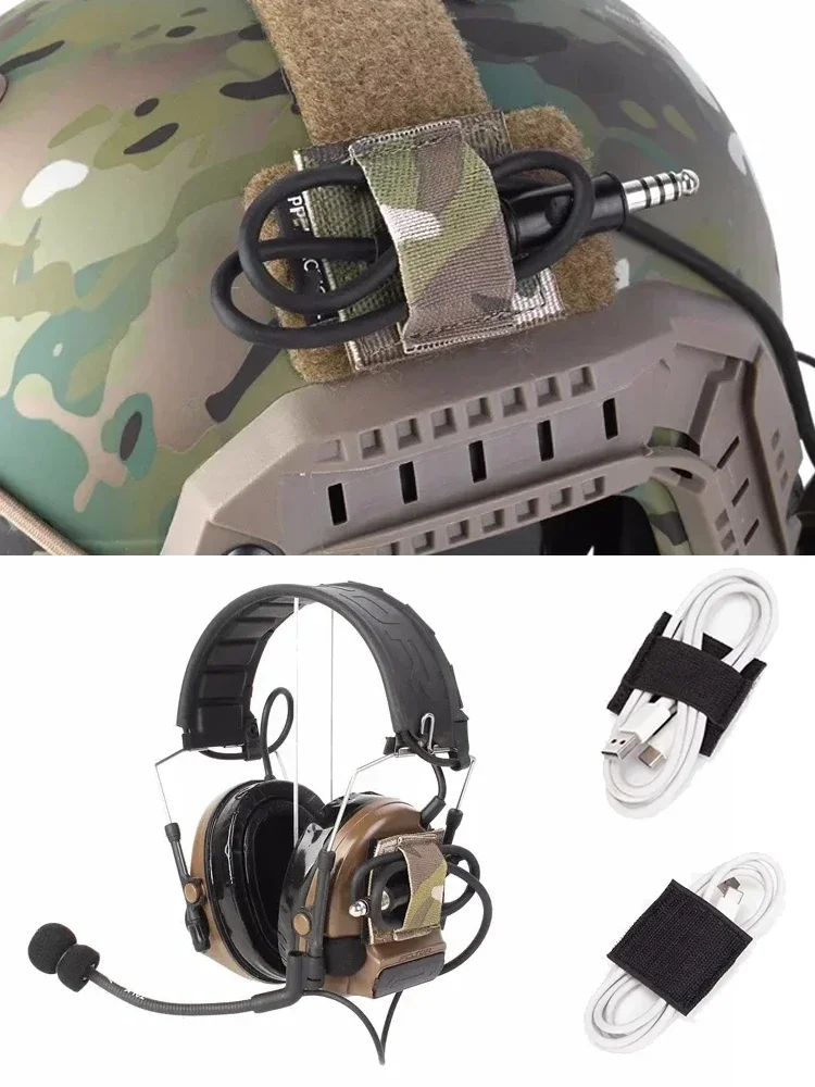 Cable de intercomunicación táctico para auriculares, correa de recogida, organizador elástico, arnés de cables para auriculares, gancho adhesivo para casco y auriculares