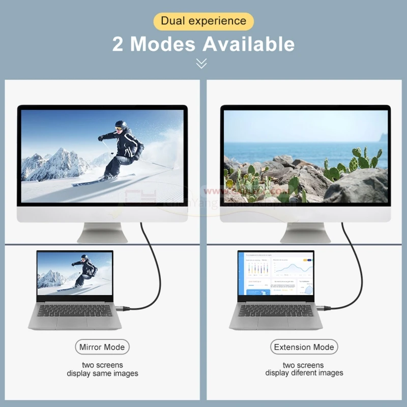 Con cable 8K/4K MINI DP a HDMI en modo Espejo, modo de extensión.