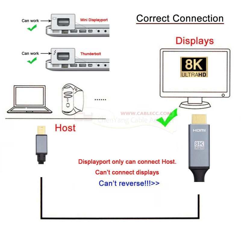 Mini DisplayPort 1,4 Fuente a HDMI 2,0 Pantalla 8K 60Hz UHD 4K