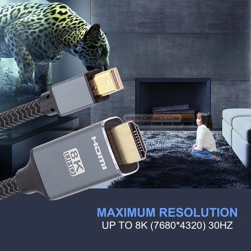 Mini DisplayPort 1,4 Fuente a HDMI 2,0 Pantalla 8K 60Hz UHD 4K Cable de monitor macho a HDMI