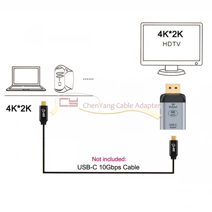 Cable de 10Gbps 100W fuente hembra tipo C a Displayport Sink adaptador HDTV 4K 60Hz 1080p para tableta, teléfono y computadora portátil