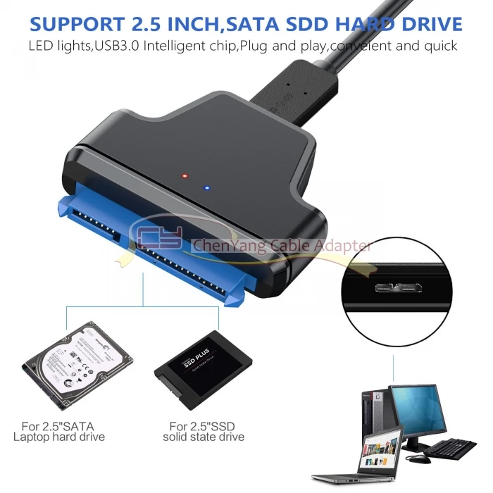 5Gbps Micro USB 3,0 a SATA 22Pin 7 + 15 Adaptador de carcasa para disco duro de 2,5 "SSD HDD