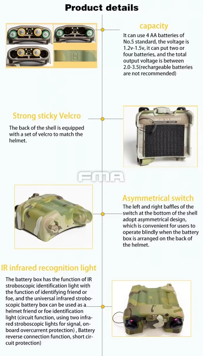 Caja de alimentación de batería NVG con soporte para casco táctico FMA para PVS-31 IR estroboscópico equipo de aventura al aire libre