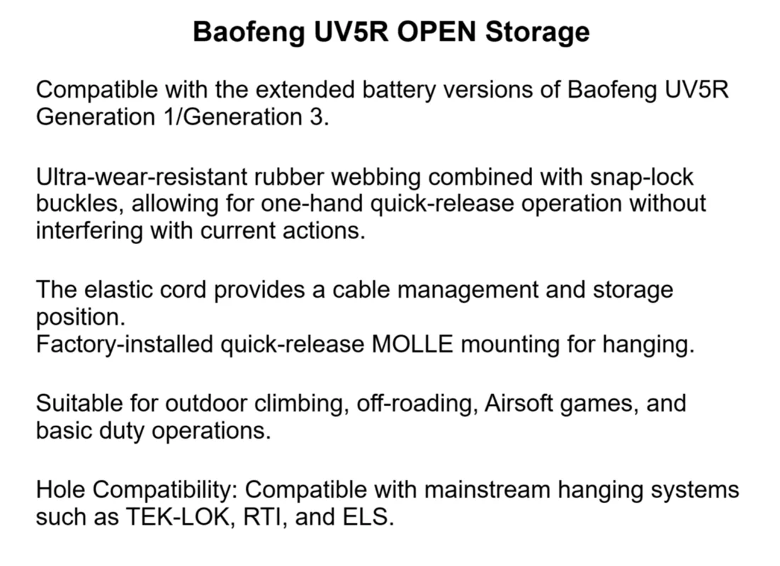 Almacenamiento abierto de walkie-talkie táctico Airsoft para versión de batería extendida de generación UV5R 1/generación 3