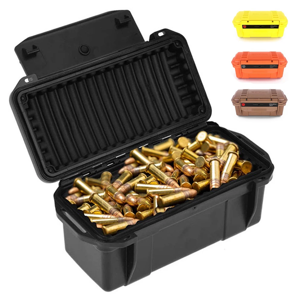 Caja de almacenamiento de balas tácticas EDC, caja de sellado a prueba de golpes de campo, contenedor sellado de caza al aire libre con almohadilla amortiguadora para caza y Camping