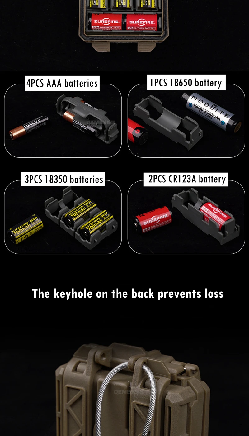 ●Adecuado para: 4 pilas AAA, 1 batería 18650, 3 pilas 18350, 2 pilas CR123A, 4 pilas CR2032.