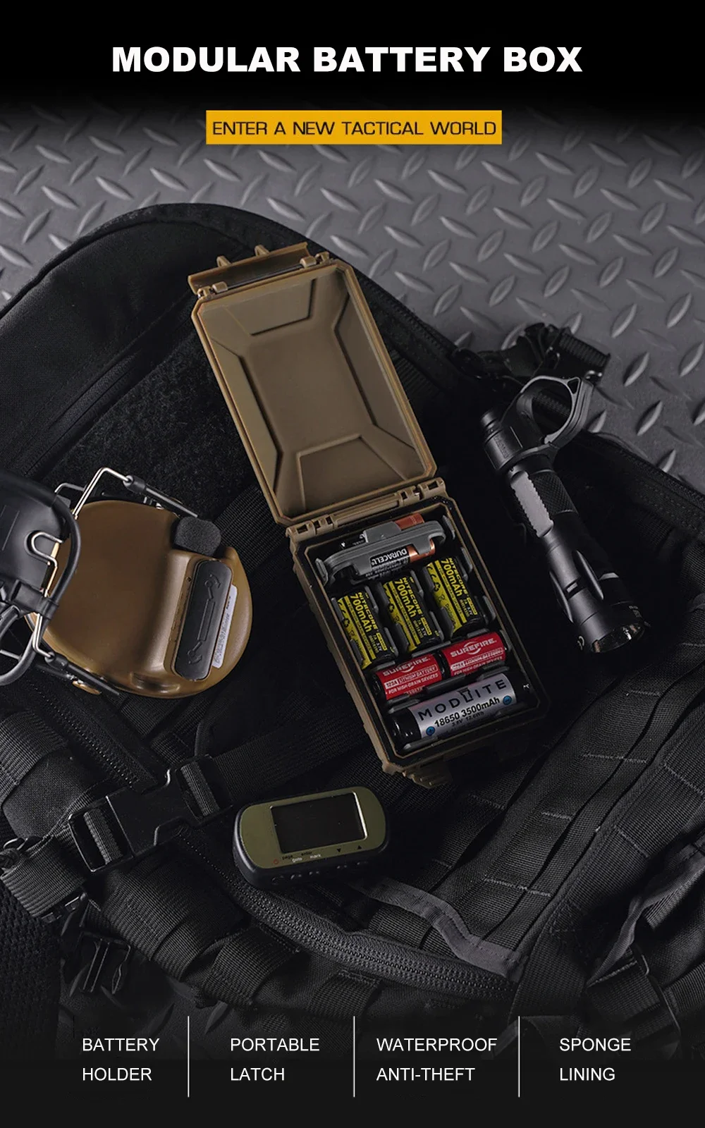 Caja de almacenamiento de batería táctica Modular Molle chaleco de caza militar llevar 18650/AAA/CR123A/18350 funda con soporte de batería accesorios