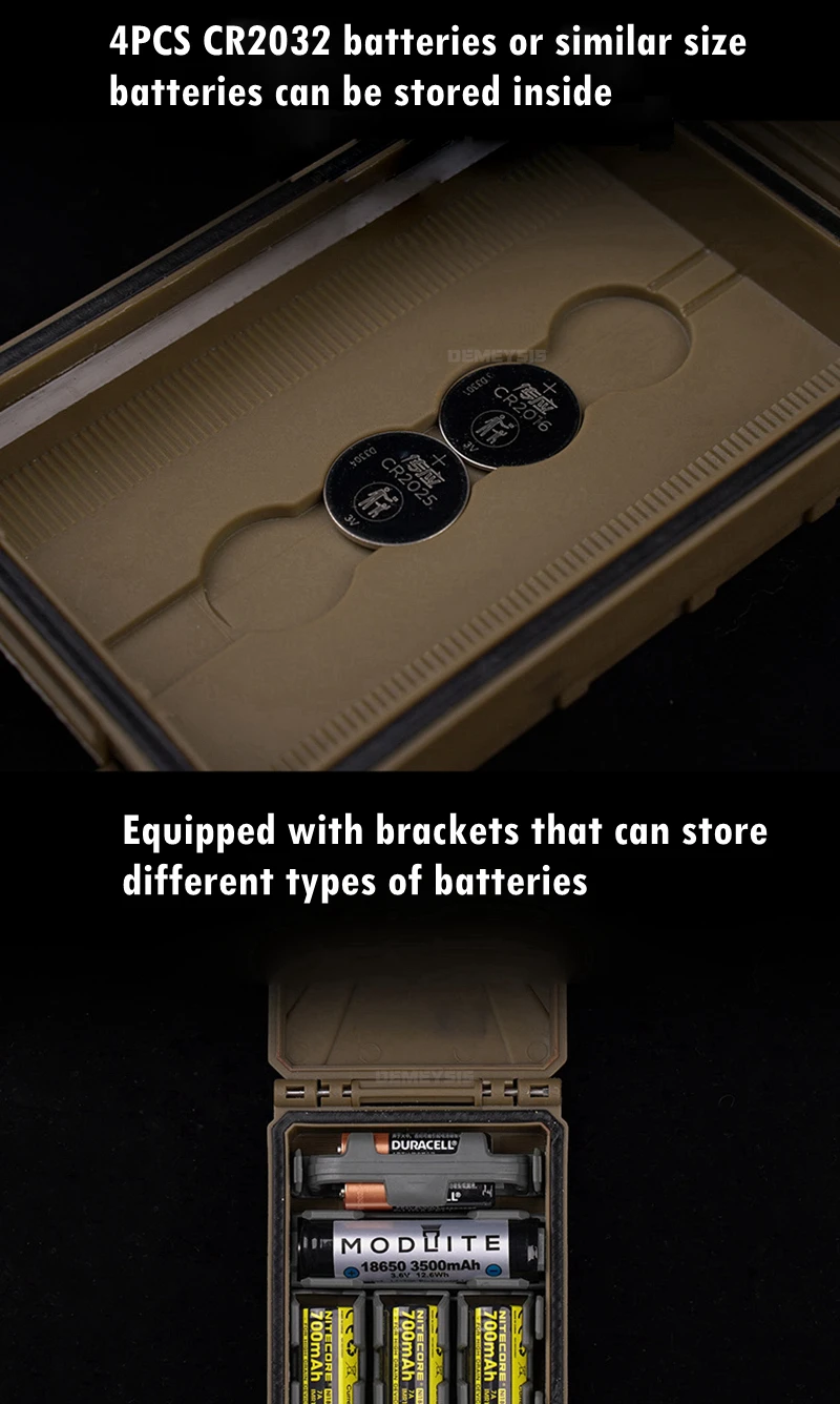 ● Adecuado para: 4 pilas AAA de 1, 1 pila AAA de 1, 18650, 3 pilas de 12, 18350, 2 pilas CR123A de 3, 4 pilas CR2032 de 4, 4 pilas CR123A de 2, 4 pilas CR2032