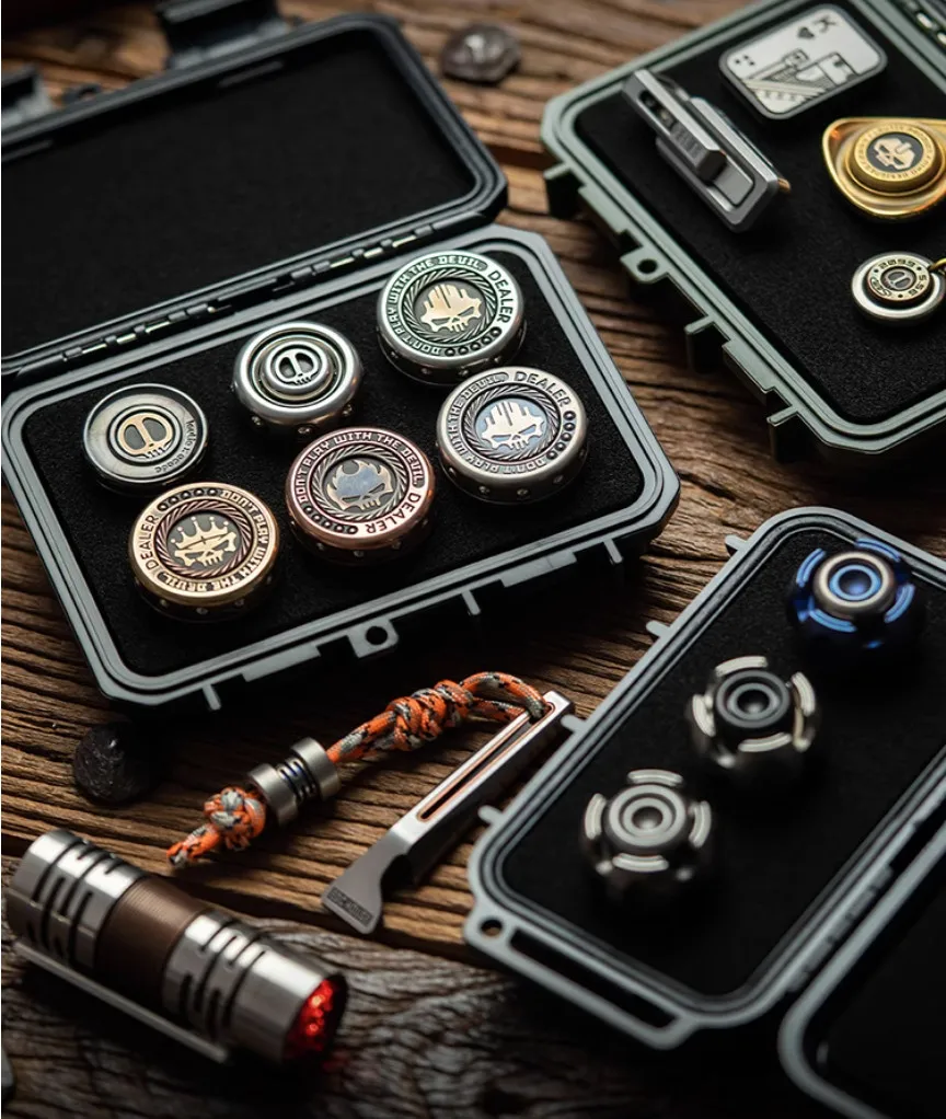 Caja de almacenamiento EDC de tres pruebas, Fidget Spinner, juguete de marca de empuje, Mini estuche de esponja portátil de seguridad impermeable y a prueba de golpes para exteriores