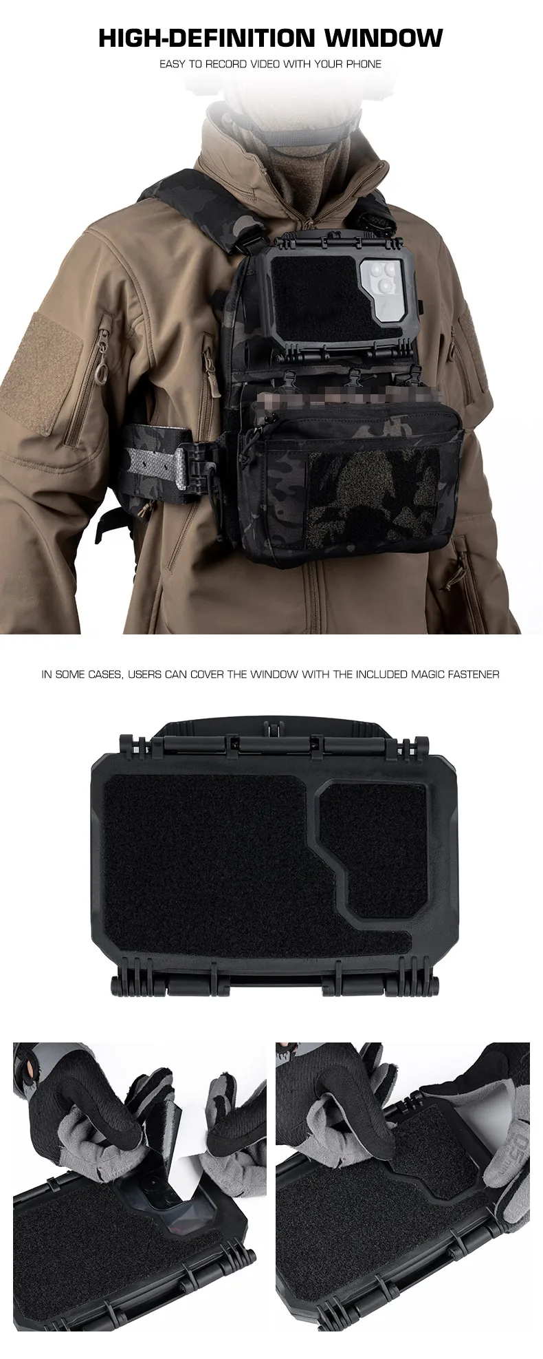 Caja de almacenamiento MOLLE de liberación rápida V2 PLUS Caja de montaje para dispositivos inteligentes Se adapta al intercomunicador GPS de teléfono de 6,7 pulgadas para senderismo, acampada, deportes al aire libre
